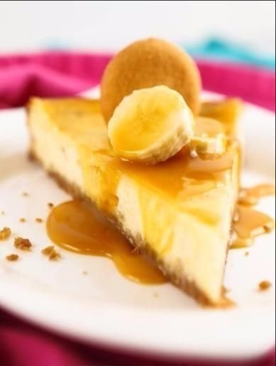 6.Готовый чизкейк извлечь из формы и украсить бананами.