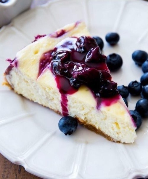 6.Когда полностью застынет сырная основа, украсить чизкейк свежими ягодами или вареньем и подать на стол.