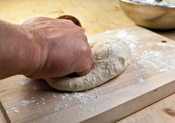 Далее - вполне рутинная, но необходимая процедура: тесто хорошенько разомнем, не жалея сил и времени.