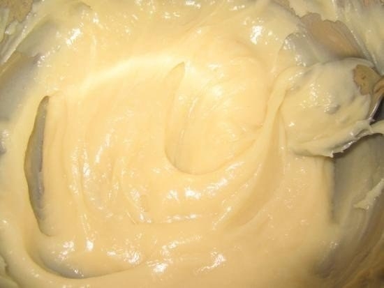 Пока готовится корж готовим молочный крем. Для этого перемешиваем яйца с мукой. Отдельно ставим на маленький огонь молоко и растворяем в нем сахар. Горячее сладкое молоко вливаем в яичную смесь, все очень быстро перемешиваем. Ставим массу на самый маленький огонь и доводим до необходимой густоты.