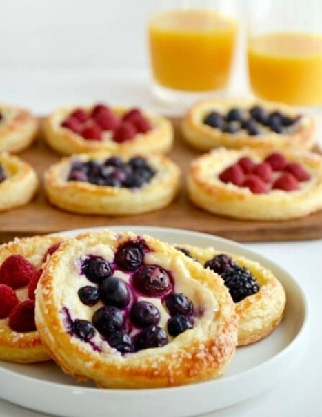 Сегодня мы предлагаем испечь невероятно вкусные, но очень легкие в приготовлении слоеные тарталетки с творогом и ягодами.