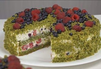 Давайте приготовим необычный, но очень красивый торт, с зеленым бисквитом и нежным ягодным сливочным кремом.