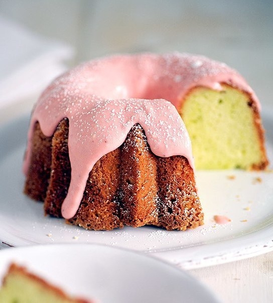 Охладить в форме в течение 10 минут, а затем перевенуть на блюдо. Подавать с клубнично-сливочной глазурью.