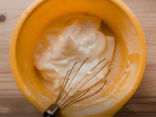 5. В отдельной емкости взбить белок до крепкой пены и аккуратно подмешать в основное тесто.