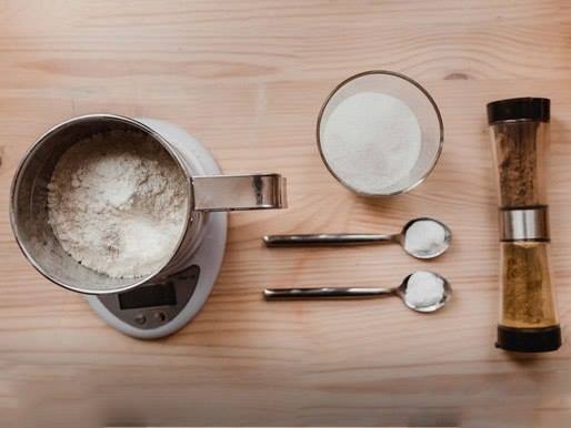 1. Тщательно смешать в чаше муку, сахар, соду, разрыхлитель и корицу.
