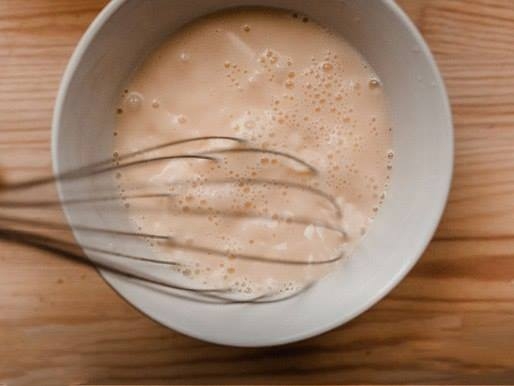 3. Растопить сливочное масло и добавить в емкость с молоком. Перемешать.