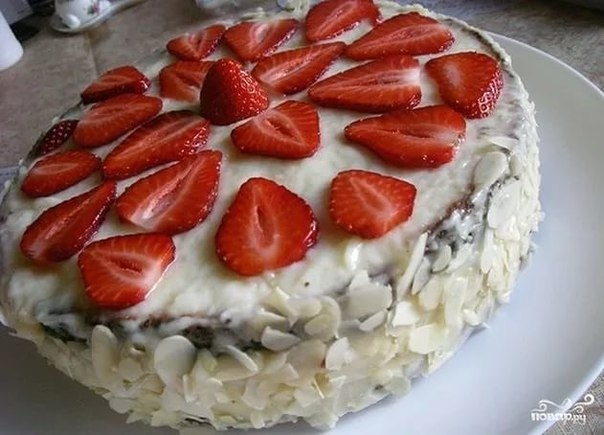 Верх залить шоколадной глазурью. Бока обсыпать миндальными листиками. Дальше как фантазия сработает: я из белой глазури (сах.пудра+лим.сок) нарисовала цветы и бабочку. Дальше обсыпала цветной кокосовой стружкой.