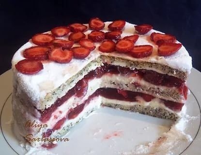 Выпечь 3 коржа - 2 маковых и 1 белый.
