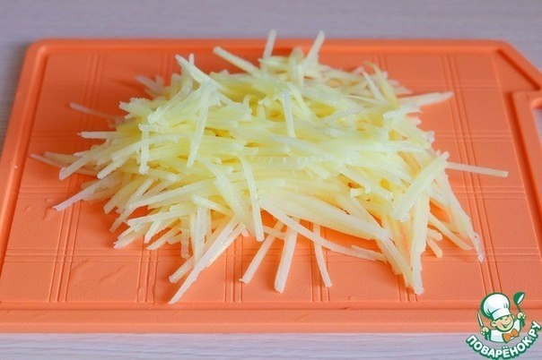 Картофель натереть на корейской терке не крупной соломкой