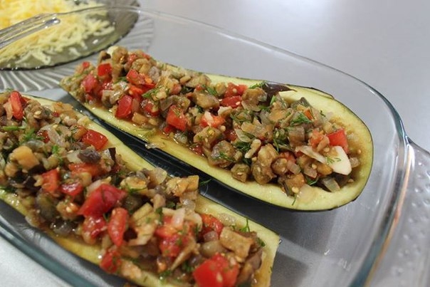 Лодочки промыть от соли и выложить начинку. Запекать в предварительно разогретой до 180 гр духовке примерно 20 мин.
