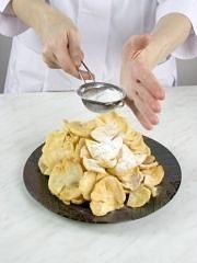 Эти лепешки нужно надрезать ножом в 2-3 местах и жарить в кипящем масле до образования светло-желтого цвета. Готовый акандж вынимаем из кастрюли, даем маслу стечь, выкладываем на блюдо и посыпаем сахарной пудрой.