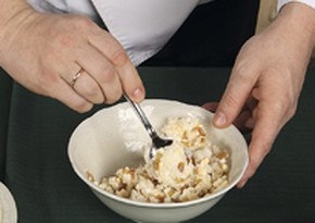 Приготовьте сметанный соус. Поджарьте муку с маслом до появления характерного орехового запаха. Добавьте сметану и варите 5–7 минут. Добавьте соль по вкусу.