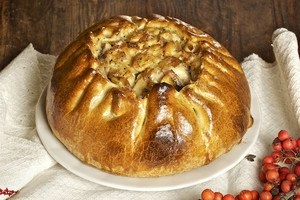 Поставьте кулебяку в теплое место для расстойки на 30 мин. Смажьте сырым яйцом.