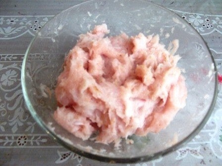 2. Измельчить кусочки филе в блендере. Готовый фарш посолить, поперчить.