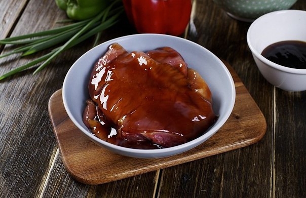 1 Замаринуйте свинину в 2/3 стакана соуса терияки, поместив в холодильник на 2–3 часа.