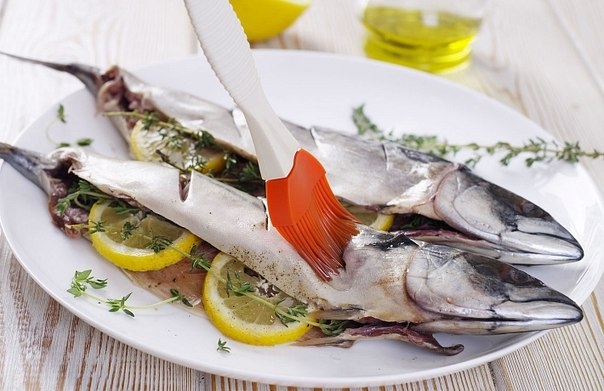 4 Закройте скумбрии в исходное положение и натрите оливковым маслом снаружи.