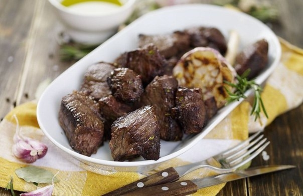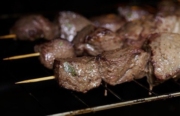 5 Готовому мясу дайте отдохнуть пару минут, снимите с шампуров и подавайте.