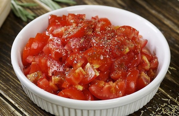 1 Приготовьте томатную сальсу: нарежьте помидоры мелкими кусочками, добавьте к ним оливковое масло и 1 столовую ложку сока лимона, посолите, поперчите и перемешайте.