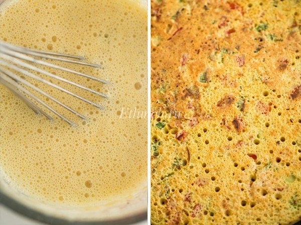 2. В маленькой миске взбейте вместе нутовую муку, чесночный порошок, соль, перец, разрыхлитель, и, если используете, красный перц.