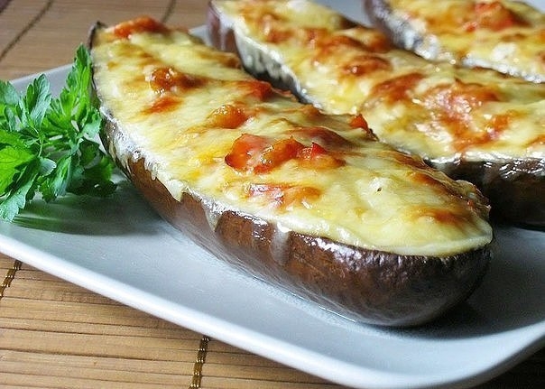 Баклажаны разрежьте пополам, аккуратно выньте серединку и мелко ее нарежьте. Все посыпьте солью, чтобы ушла горечь, и оставьте на 30 минут. Баклажанные лодочки промойте, обсушите, смажьте растительным маслом и поставьте их в духовку на 20 минут при температуре 180 градусов. Пока баклажаны запекаются, приготовьте начинку. Помидоры очистите от кожицы, нарежьте кубиками и добавьте к ним мелко нарезанный базилик. Отварите куриное филе и нарежьте его также кубиками. Мякоть баклажанов слегка отожмите и обжарьте в масле до румяного цвета. Добавьте курицу, помидоры и зелень. Посолите и поперчите. Выложите в баклажанные лодочки начинку, посыпьте тертым сыром и запекайте в духовке еще 10 минут.