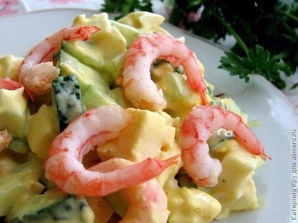 8. Салатик пришелся по вкусу всем, а особенно любителям морепродуктов. Креветки внесли свой вкус и аромат в это блюдо.