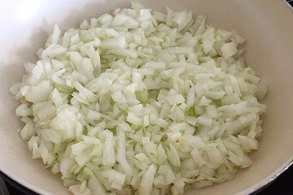 Очищаю лук, измельчаю. В бабушкином рецепте, кстати, указано 700-800 грамм лука. Ну, в общем, лука нужно много. Обжариваем, подсаливаем.
