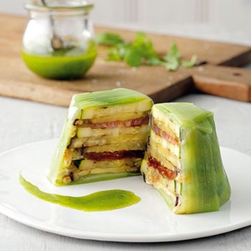 Подать пирамидки, вынув из формочек — и с базиликовым маслом.