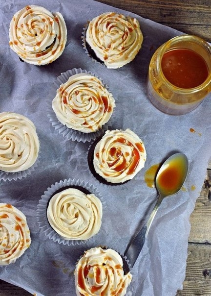 9. Готовый крем перекладываем в кондитерский мешок и украшаем наши шоколадные кексики. По желанию можно полить