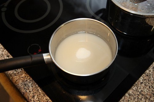 Замоченный набухший желатин перекладываем в маленькую кастрюльку, добавляем 100 граммов сахара и ставим кастрюльку на огонь. Постоянно размешивая, нагреваем ,но не даем закипеть,до полного растворения желатина и сахара.Добавляем цедру лимона и сок.