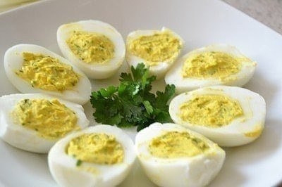 Ну вот и все прекрасная и простая закуска из вареных яиц готова, причем времени ушло минут 25.