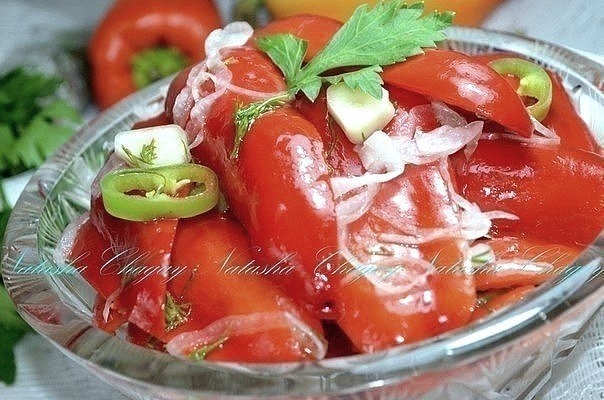 Пока лето еще не закончилось, будем продолжать радовать близких вкусными дарами этого времени года. Красивая и вкусная закуска из перца замечательно украсит праздничный стол, а также будет уместной и на пикнике под шашлычок. А приготовить ее очень просто.