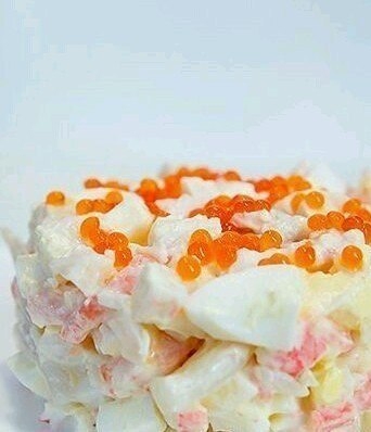 2.Морской салат с креветками, кальмарами, икрой и крабовыми палочками