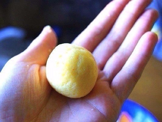 4. Взять кусочек теста, сформировать из него шарик и обвалять в муке.