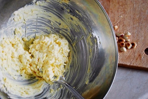 2) После этого смешайте 160гр сливочного сыра, половину тертого сыра, куркуму, щепотку соли, чеснок (выдавленный на чеснокодавке) и замешайте вилкой, до однородной массы.